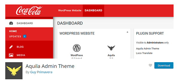 Zainspirowany językiem projektowania materiałów Google, Aquila jest kompletnym przeprojektowaniem Pulpitu nawigacyjnego WordPress z naciskiem na łatwość obsługi. Według jego autora ” oczyszcza obszar administracyjny z niepotrzebnych lub potencjalnie mylących elementów dla użytkownika końcowego.”