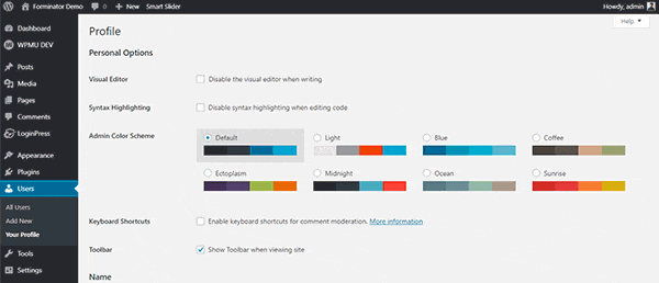 Aby zastosować niestandardowy schemat kolorów administratora, na przykład używając kolorów marki, możesz użyć wtyczki Admin Color Schemer.